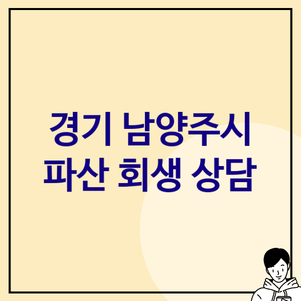 남양주시에서 개인파산/회생 관련 상담은 전문 변호사나 법무사 사무실에서 무료로 받을 수 있으며, 대한법률구조공단에서도 상담을 제공하고 있습니다.