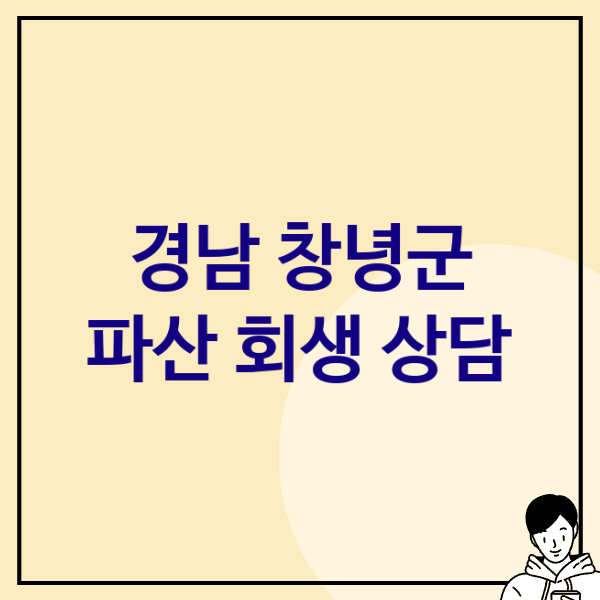 창녕군에서 개인파산/회생 관련 상담은 전문 변호사나 법무사 사무실에서 무료로 받을 수 있으며, 대한법률구조공단에서도 도움을 받을 수 있습니다.